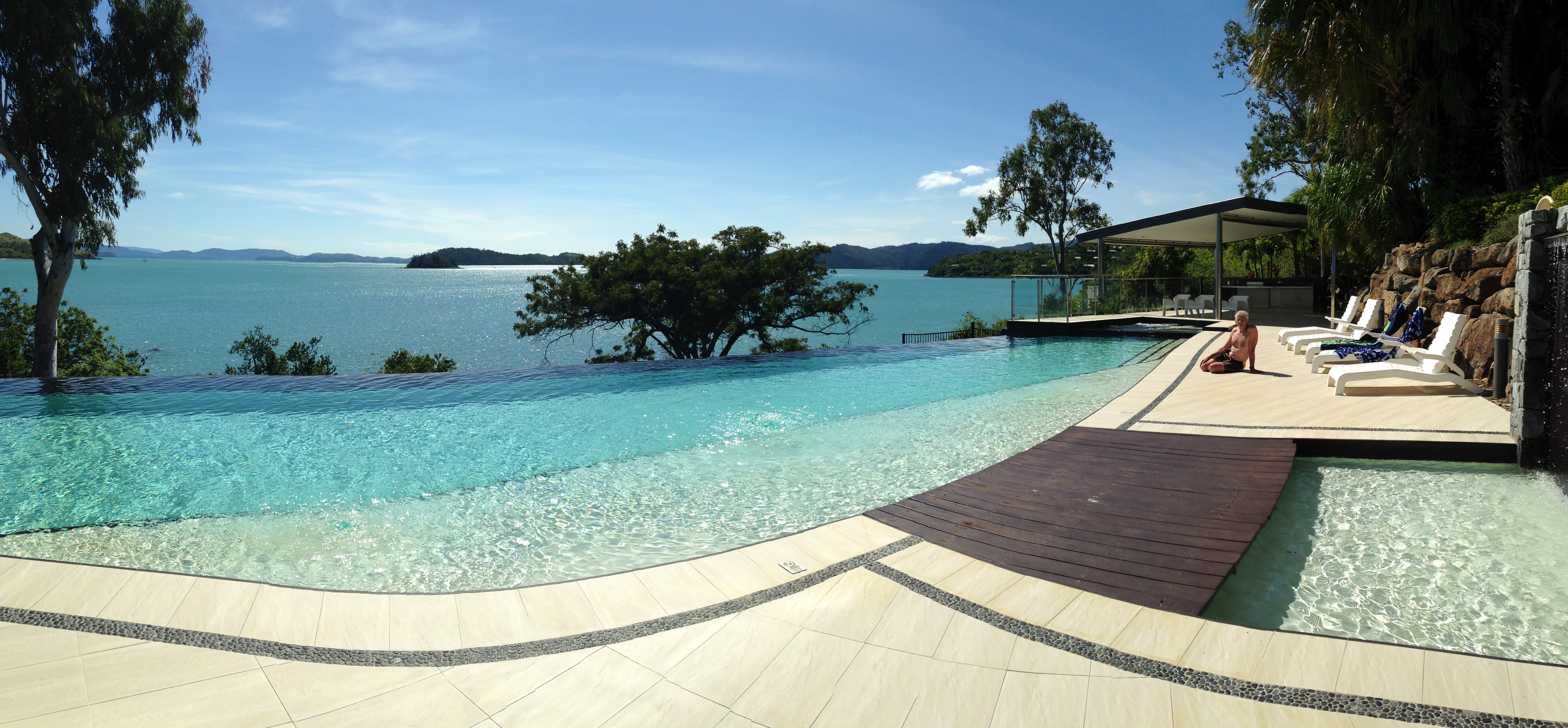 We are very comfortable in our ocean-top bungalow, despite the strong winds. It’s such a gorgeous long view to sit and look at, and then it’s so much fun to just walk out the patio doors onto to the deck and jump into the ocean! It’s nicely located so we can pretend we are somewhere completely isolated until we walk out the back door towards the resort to avail ourselves of the facilities (and food!)